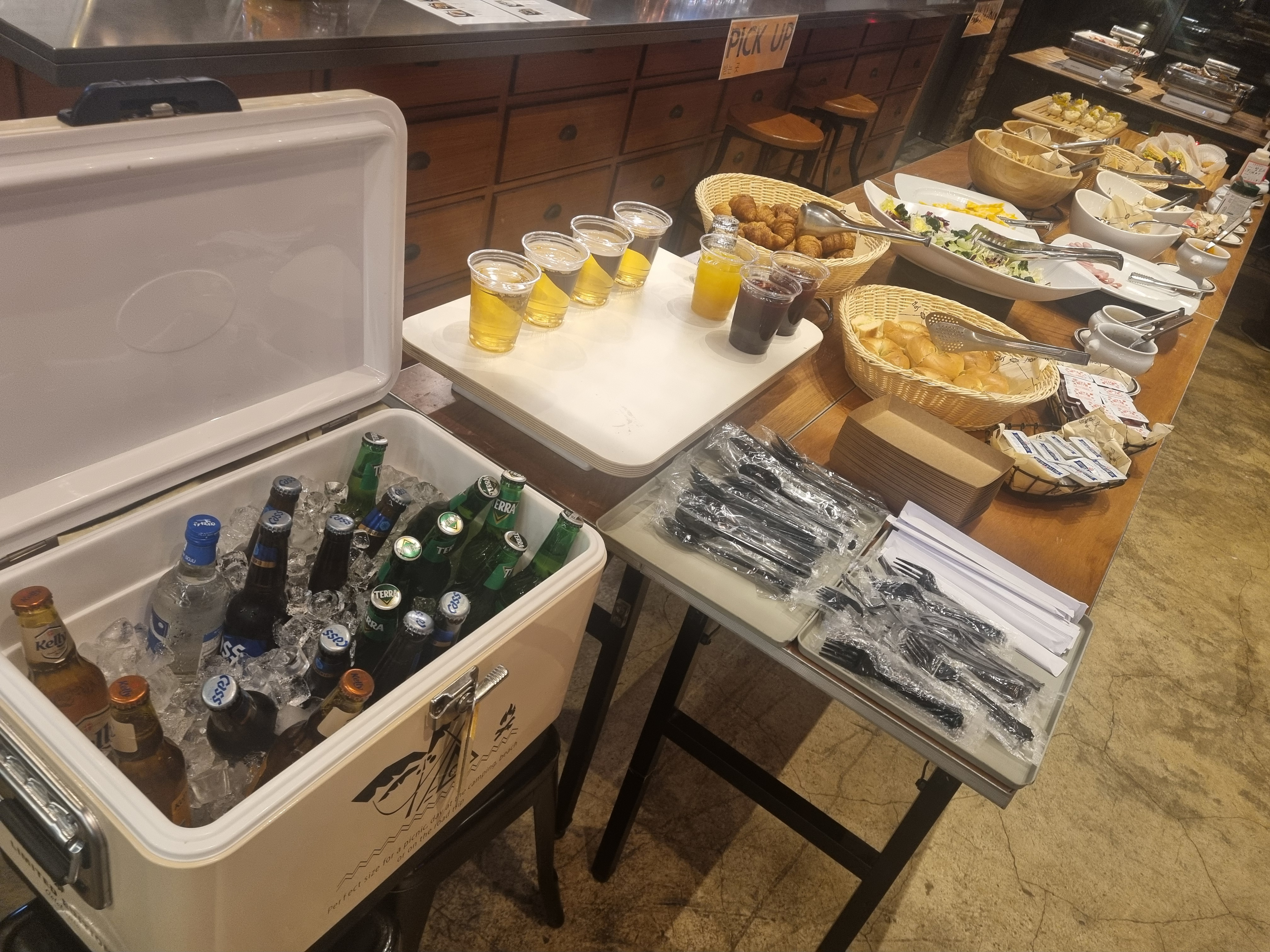 비어파티에는 뷔페식으로 음식이 차려져 있었고,