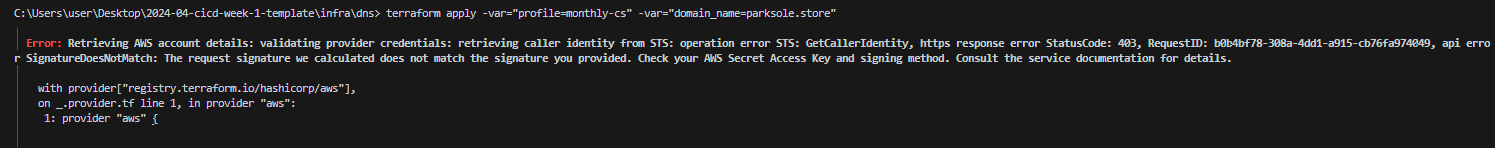오류: AWS 계정 세부 정보 검색 중: 공급자 자격 증명 확인 중: STS에서 호출자 신원 검색 중: 작업 오류 STS...