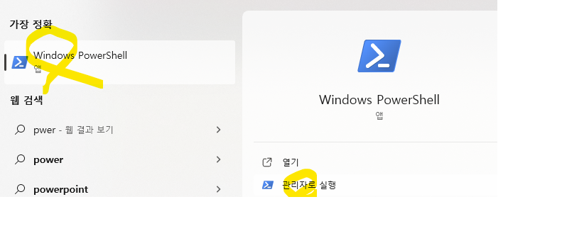 1. powerShell 관리자로 실행을 들어가자.