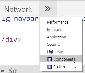 components 탭을 누르면 컴포넌트 검사가 가능하다.