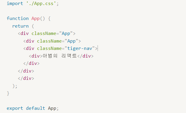 자바스크립트와 제이쿼리를 사용했을 때에는 style을 주고 싶을 때나 태그에 해당되는 내용들을 사용하려할 때 class를 넣어사용했지만, 리액트에서는 <div className="클래스명"> 을 사용한합니다.