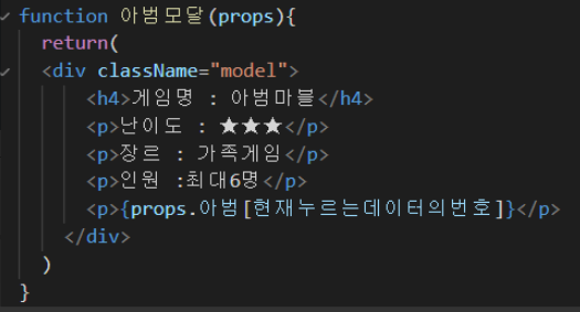 아범모달()안에 들어있는 이 props는 부모에게 전달받은 데이터가 다들어있는 것