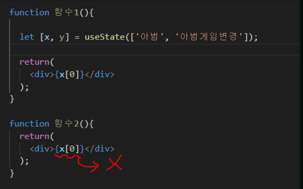 그냥 { 부모의 state명 }을 쓰는 것이 아니라 props 문법으로 state를 전송한 후 { props.state명} 을 작성해야한다는 것.
