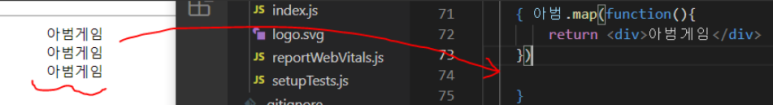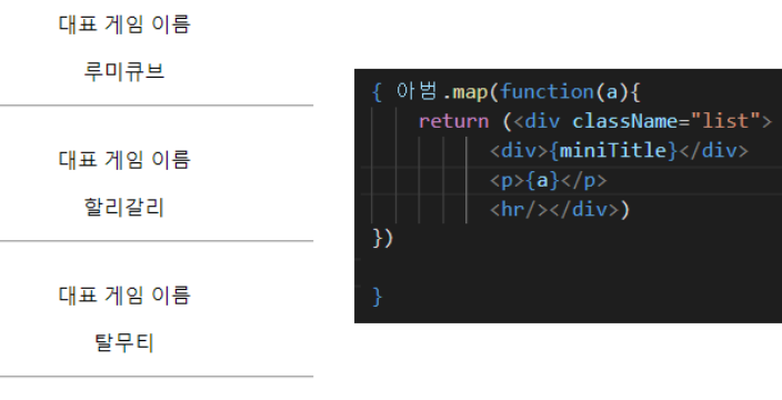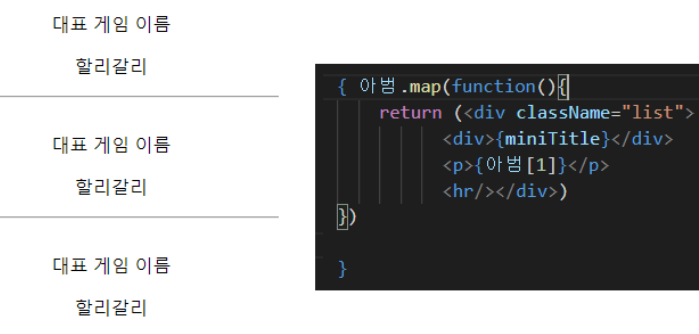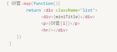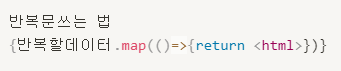 중괄호안에 반복문을 쓰는 법은? map()를 사용하는 것이다.