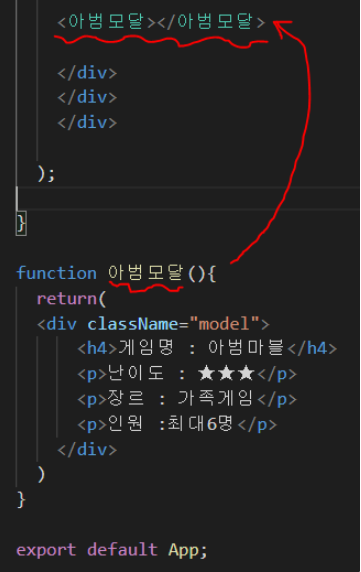 🍖 이렇게 모달창을 만들 때는 component 문법을 활용, 만들 때 주의할 점은