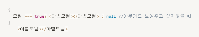 → { 모달=== true? <아범모달></아범모달> : null }