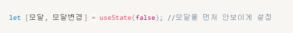 useState()안에 false말고 true를 넣었다면 모달창은 페이지에 처음부터 그대로 나와있겠지.