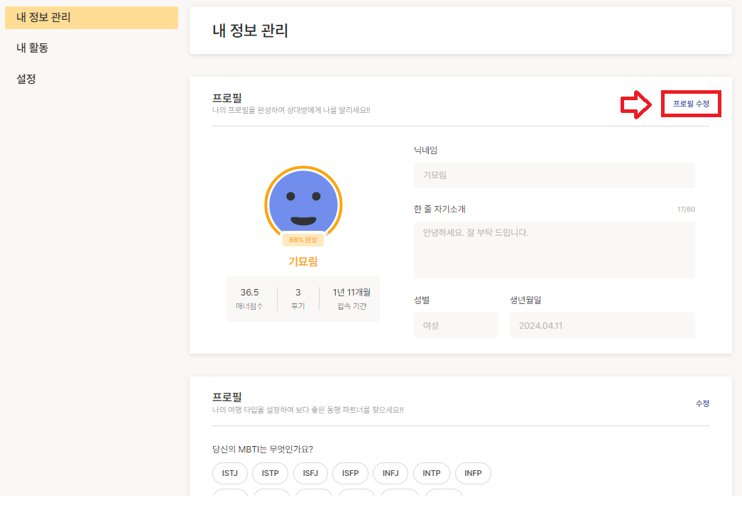 프로필 수정