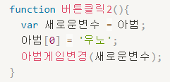 변경함수(대신할 데이터); → 아범게임변경('우노'); → 근데 이 그대로는 못 들어오고