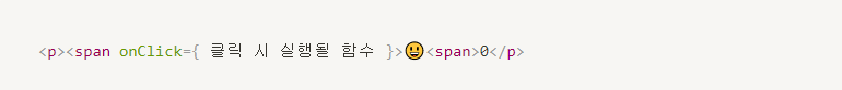 onClick={ 클릭될 때 실행할 함수 } ⇒ onClick={ ()⇒{실행할 내용} }