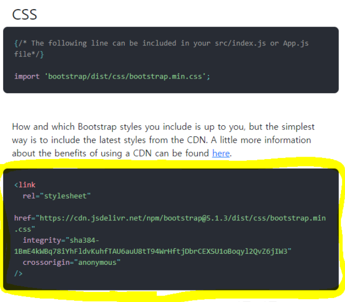 또는 yarn add react-bootstrap bootstrap 입력