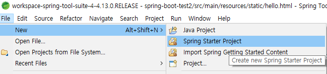 spring 사이트에 들어가서 사이트 내에 작성 후 압축파일을 생성하여 import하는 방법도 있다.