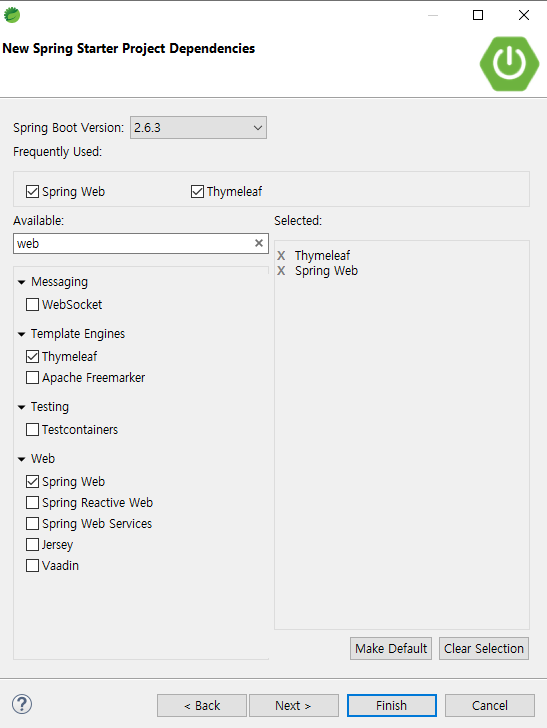Spring web 그리고 thyme 검색하여 설정