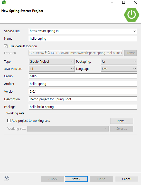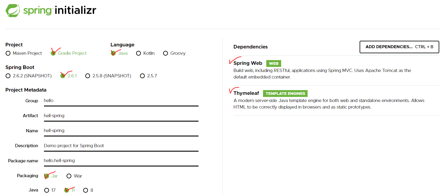 | 사이트로 이동해서 스프링 프로젝트 생성하는 방법
