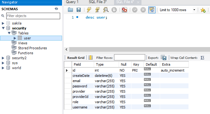 DB에 User라는 테이블이 만들어졌는지 확인