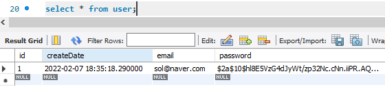 controller단의 join에 이렇게 셋팅을 하면 회원가입은 잘 되어지지만, 패스워드가 암호화가 되어야한다.