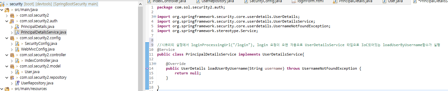 auth패키지안에 PrincipalDetailsSevice 생성 후