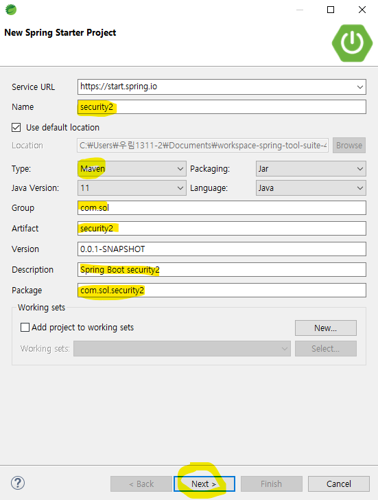 사용 tool : Spring Boot (sts-4.11.0.RELEASE)