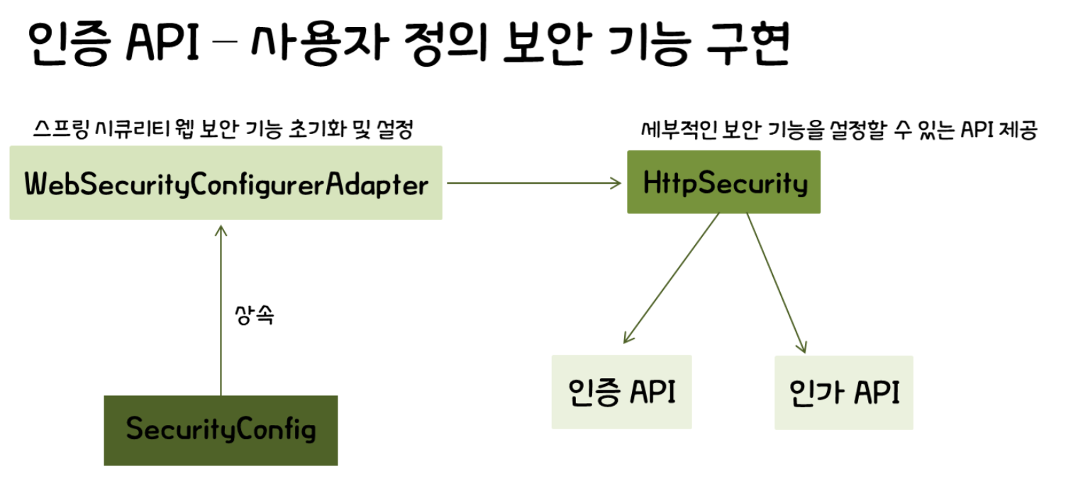 - WebSecurtiyConfigurerAdapter 안에 있는 메소드 중에서 HttpSecurity http를 파라미터로 전달받는 오버라이딩을 하고 그 안에 보안기능들을 설정할 것이다.
