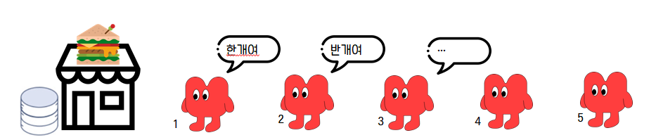 사람들이 한 명당 주문을 하는데 주문함과 동시에 차례대로 요청을 받고 응답을 해줍니다.