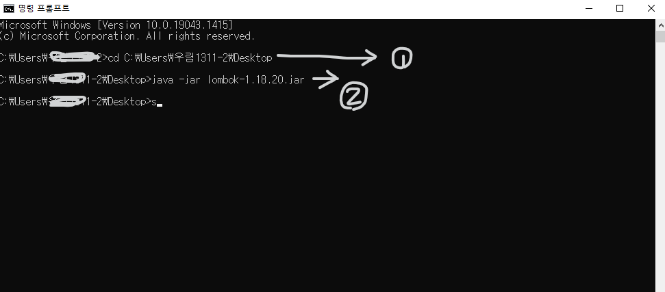 🍖 1번 cd를 치고 뒤에 lombok이 설치되어있는 주소를 입력 cd + lombok 주소